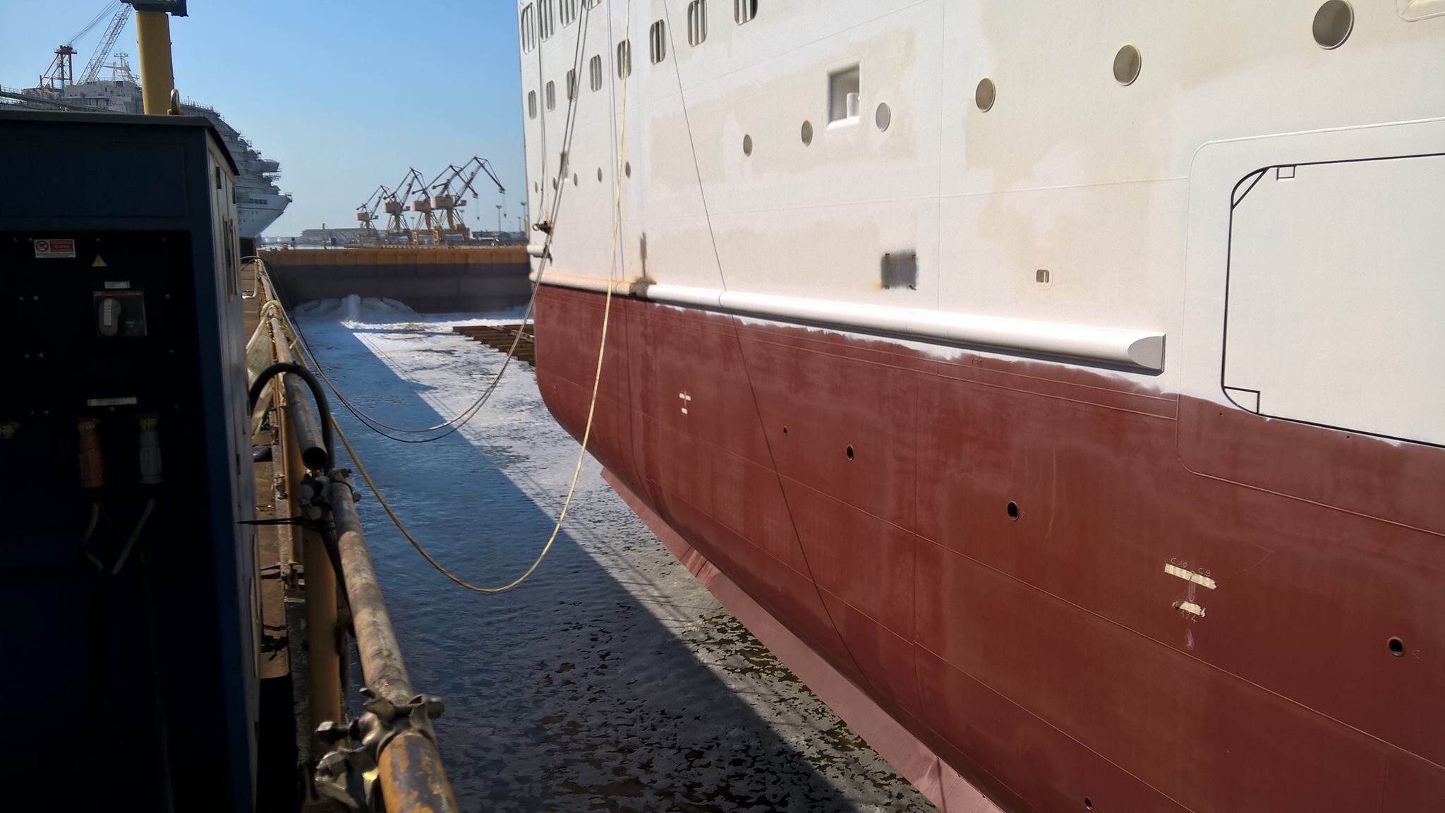 Flooding the dry dock to float the new section in