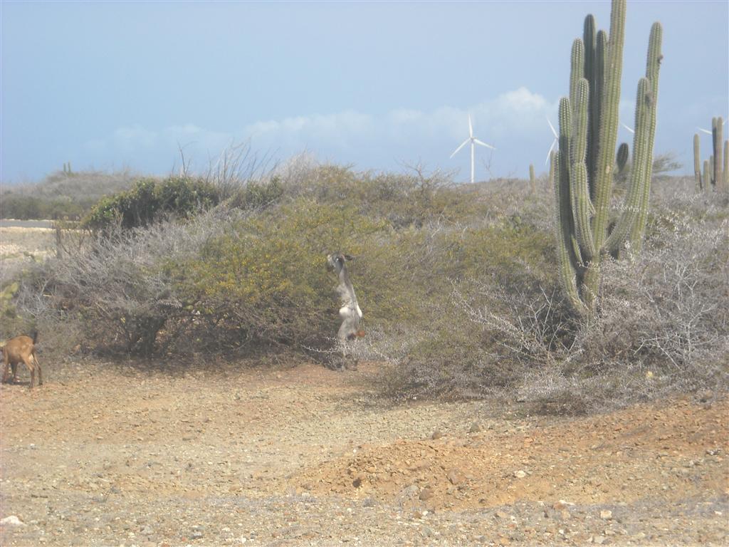 Goat standing on hind legs to eat